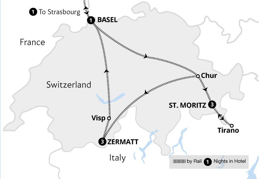 Staggering mountain peaks and serene alpine lakes provide the extraordinary setting for this holiday as we travel in First Class all the way, including on the iconic Bernina Express and Glacier Express. Staying in the Engadine Valley and the popular mountain resort of Zermatt provides idyllic bases from which to explore the Swiss Alps by rail...