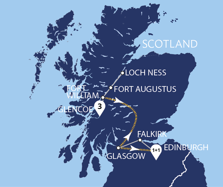 Experience a memorable festive break in Edinburgh and the Scottish Highlands. Your holiday starts and ends in the Scottish capital where you can soak up the enchanting atmosphere of Edinburgh, illuminated for the festive season. We discover the captivating Kelpies statues, enjoy the tranquil setting of Glencoe and visit the legendary Loch Ness on...