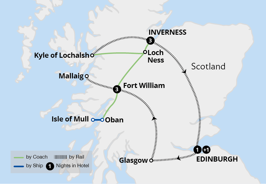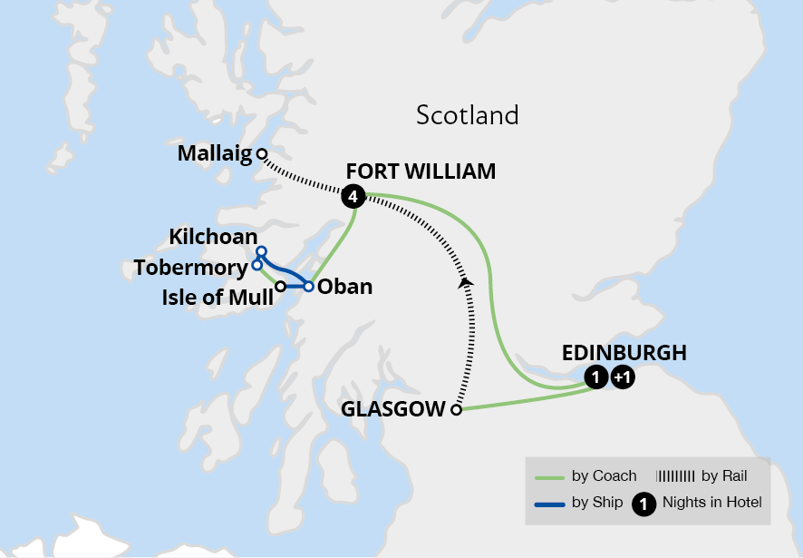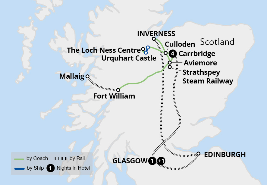 Starting from the historic city of Glasgow we visit the magnificent Scottish Highlands, soaking up the wonders of Highland scenery on journeys aboard the legendary Jacobite steam train and Strathspey Steam Railway. Delve into Scotland's fascinating heritage and rich history with a guided tour of Edinburgh Castle, take a trip into the past on a...