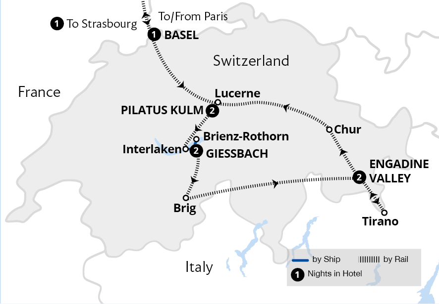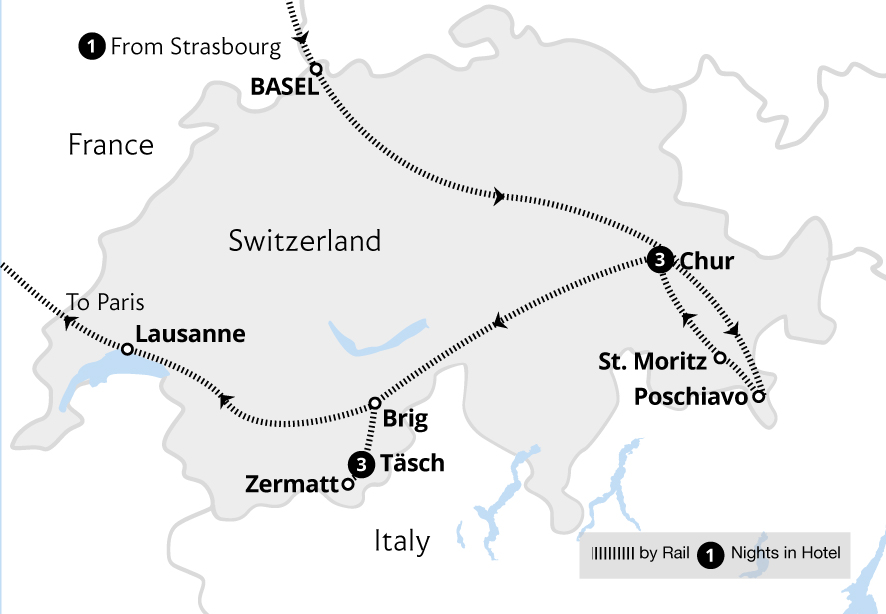 Staggering mountain peaks and serene alpine lakes provide the extraordinary setting for this holiday as we travel in First Class all the way, including on the iconic Bernina Express and Glacier Express. Staying in the Engadine Valley and the popular mountain resort of Zermatt provides idyllic bases from which to explore the Swiss Alps by rail...