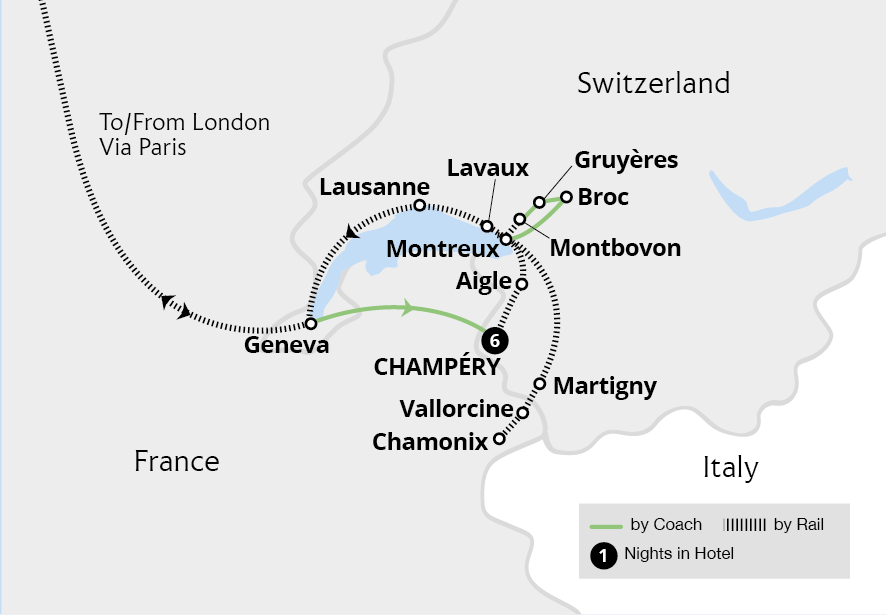 On this sensational holiday, travel from Montreux on the shores of Lake Geneva to the mountainous surroundings of the Jungfrau Massif. Explore Château de Chillon, sail on Lake Geneva and cross the Alps to the French mountain town of Chamonix on the Mont Blanc Express. Boarding the GoldenPass Express, admire views of the Bernese Alps...