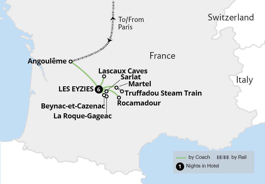 Leaving Les Eyzies after breakfast this morning, we transfer by coach to Angoulême to catch the train to Paris, travelling in First Class seats. In the French capital, we board the Eurostar in Plus class, enjoying a light meal at our seats on our way back to London St Pancras. On arrival, your holiday concludes and you can make your way home.
