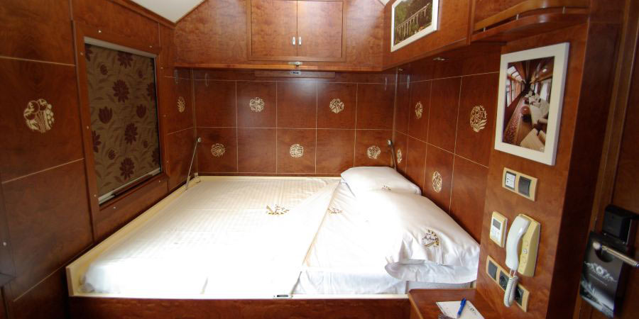 A luxurious suite with a double bed by night, that folds down into a soft and plush sofa by day. Wood panelling brings the essence of retro train travel, while the addition of a regal easy chair brings an atmosphere of royalty. Your private bathroom is equally luxurious and features a hydromassage shower that doubles as a steam room.
