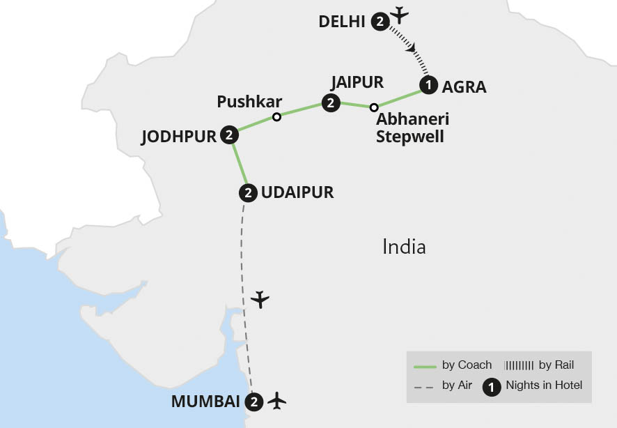 Encounter the glorious palaces, temples and sacred lakes of the Golden Triangle, Rajasthan and Mumbai - from the iconic Taj Mahal and Agra Fort to the Pink City of Jaipur, the Blue City of Jodhpur to the tribal villages of the Bishnois people. Staying in heritage hotels we experience a taste of the maharajas' lifestyle, uncovering royal...