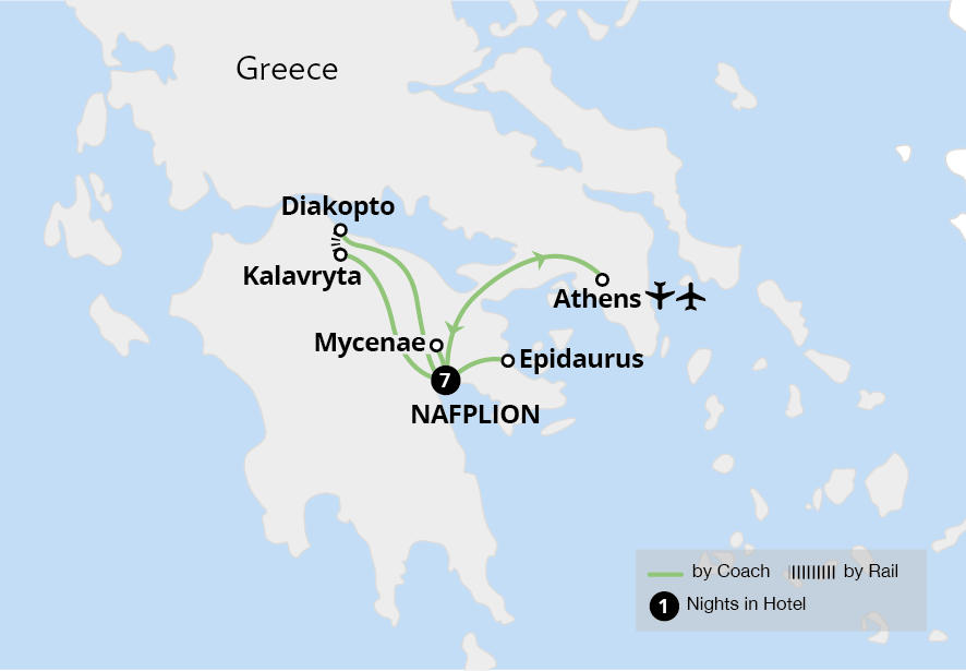 Kalavryta with the sea of Diakopto, which is the route's starting